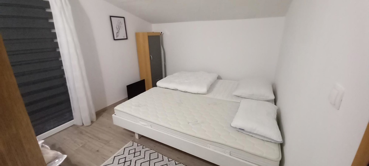 Stan ima 83,90 m² bivalne površine in je razporejen v dveh etažah. V pritličju se nahaja svetel dnevni prostor, povezan s kuhinjo in jedilnico, urejen v modernem in toplem slogu, ter kopalnica. Prostor je praktično organiziran in prijeten za bivanje. V nadstropju sta dve spalnici ter loža, idealna za jutranjo kavo ali sprostitev.
