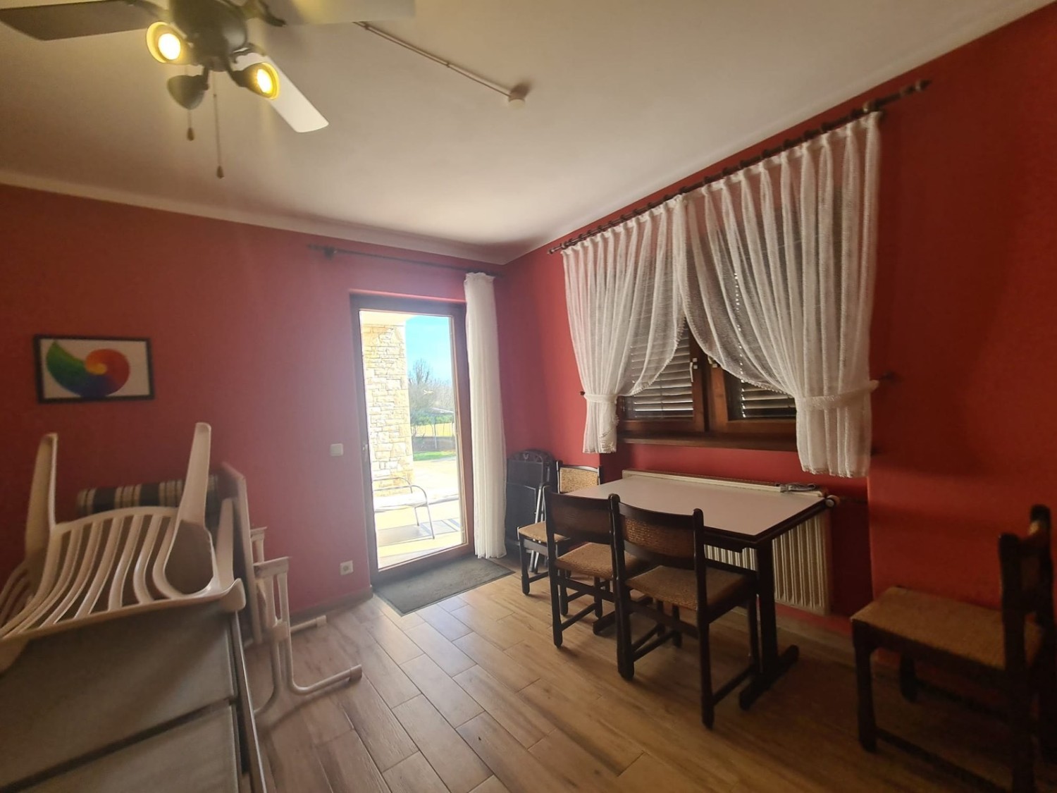 Centralno ogrevanje na olje, topla voda preko solarnega sistema.