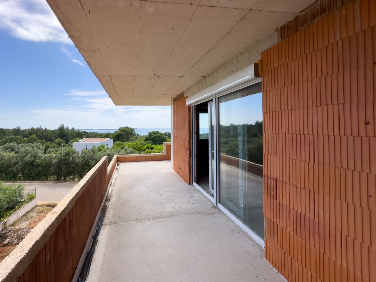 Apartma je sestavljen iz dveh spalnic, od katerih ima ena lastno kopalnico, shramba, druga kopalnica, kuhinja, jedilnica in dnevna soba, ki se odpira na veliko pokrito teraso (20m2).