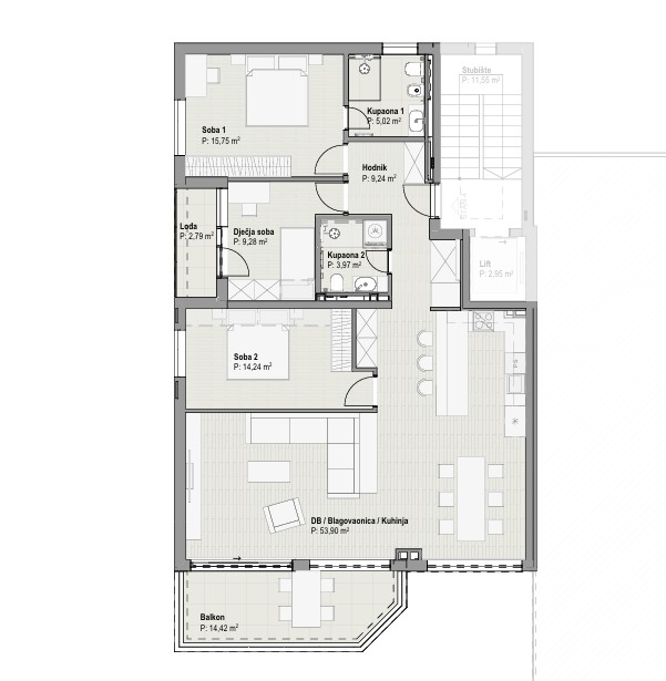 BIVIO – 3-sobno stanovanje z dnevno sobo v ekskluzivnem novem stanovanjskem objektu