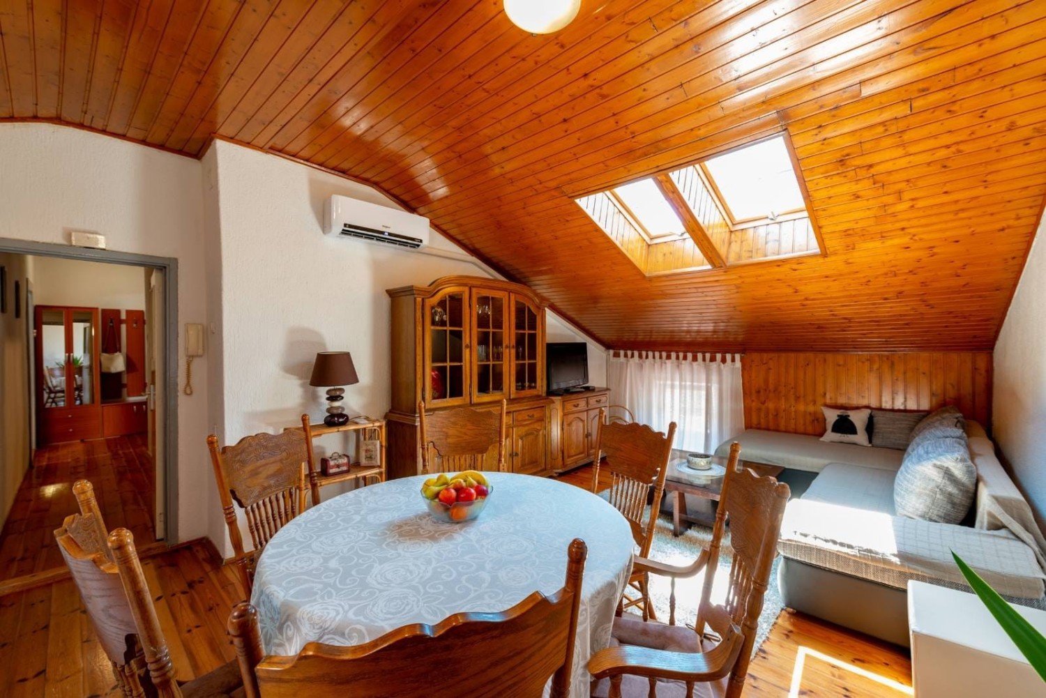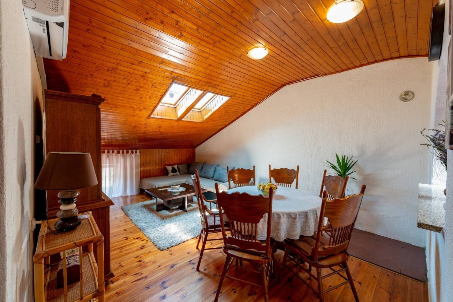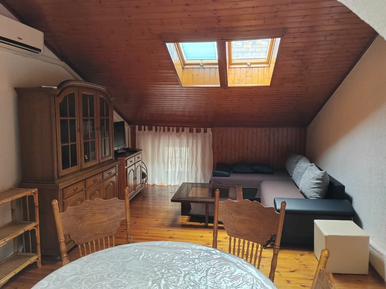 Stanovanje obsega dve spalnici, hodnik, kopalnico, kuhinjo z dnevno sobo in shrambo v stanovanju. Strešna lesena okna. 3 klimatske naprave.