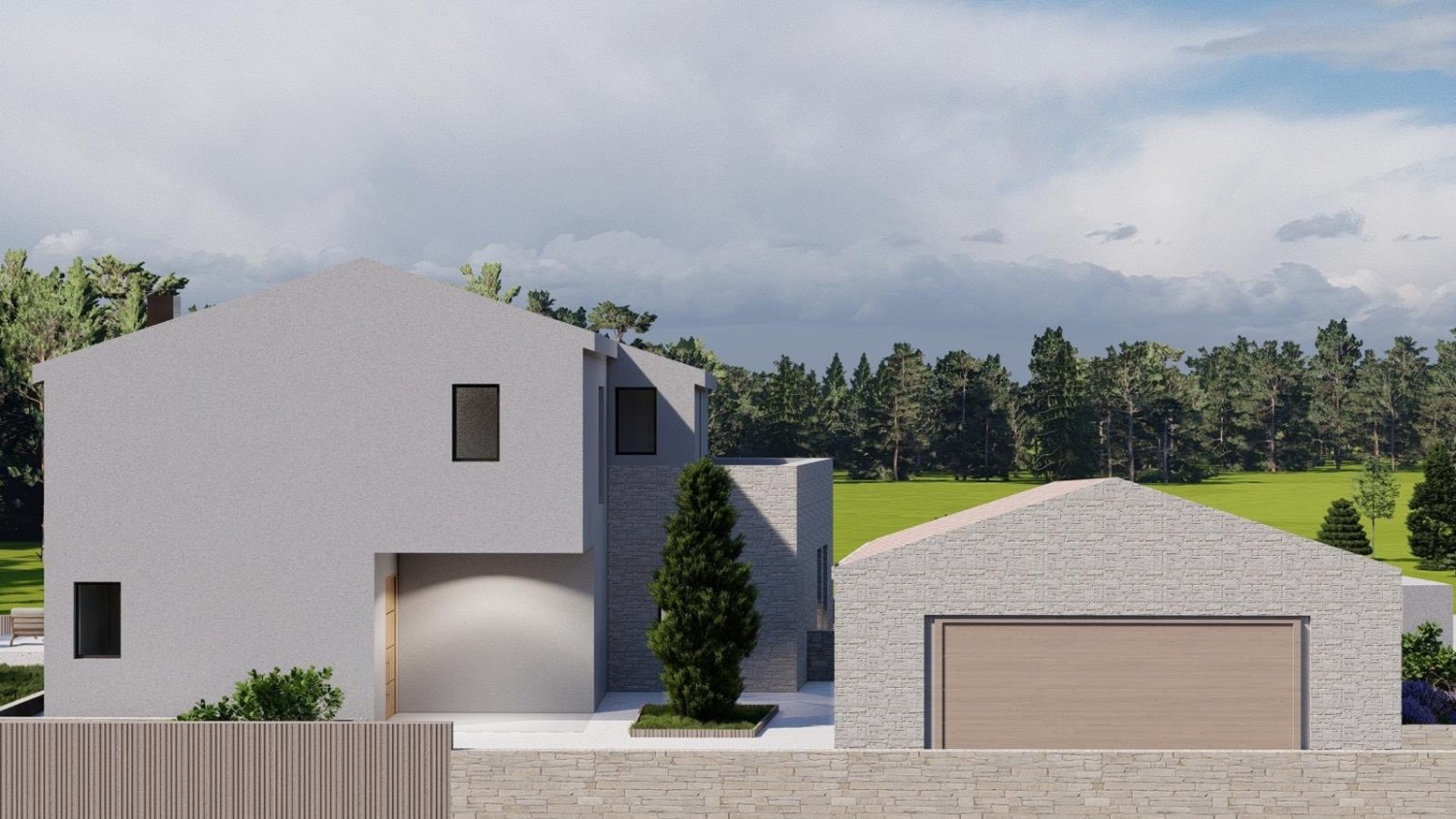 Na prodajo je gradbeno zemljišče površine 1.152 m² v okolici Tinjana, z že pridobljenim gradbenim dovoljenjem in projektom za gradnjo moderne hiše s bazenom.