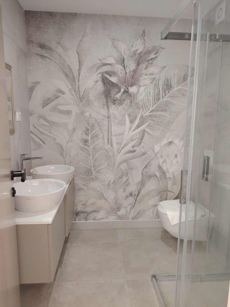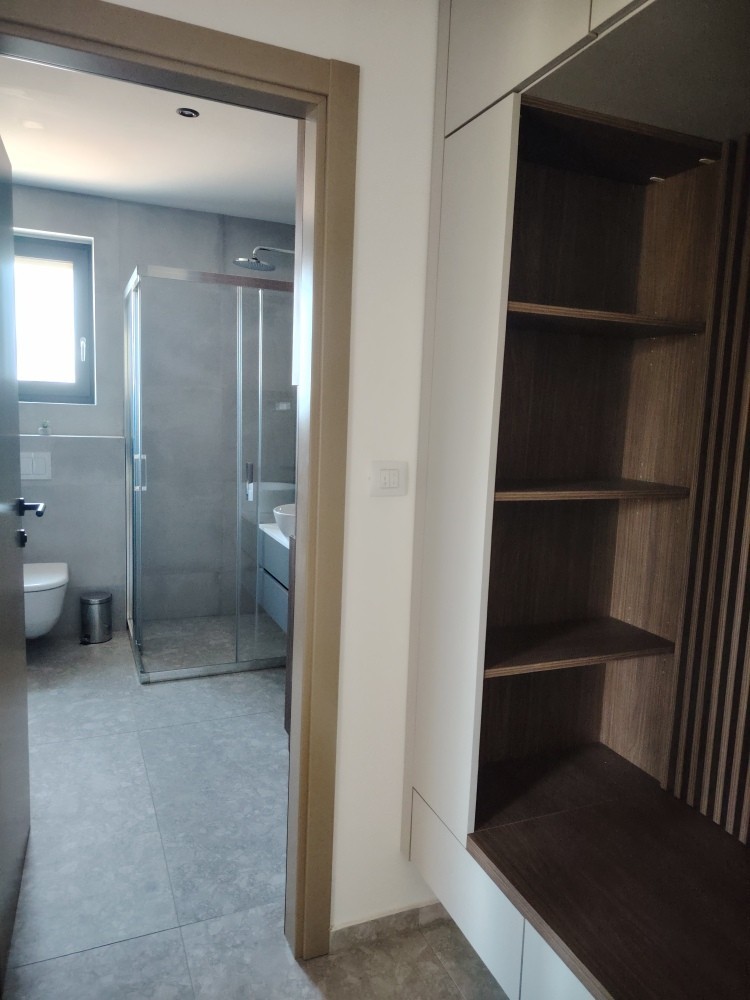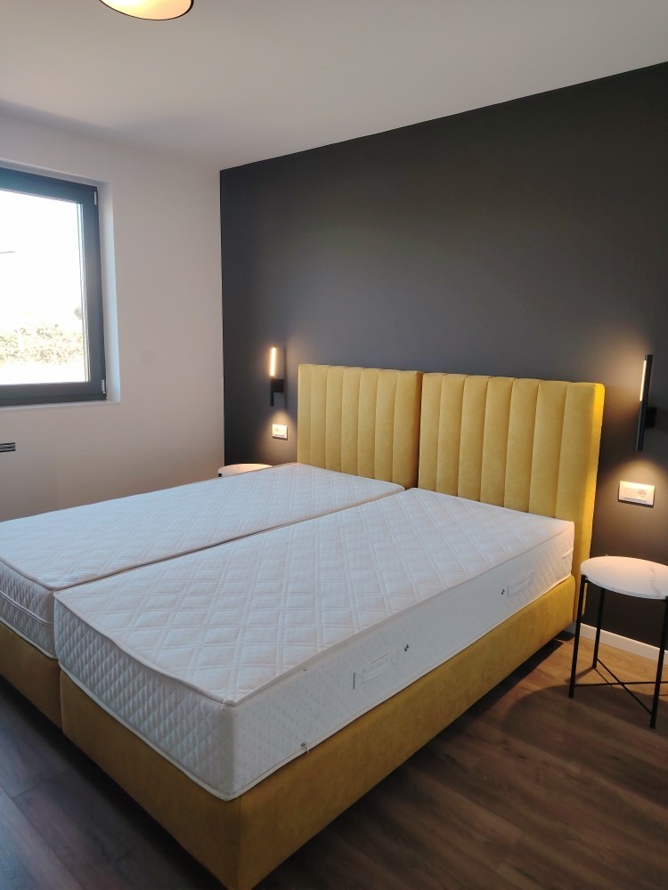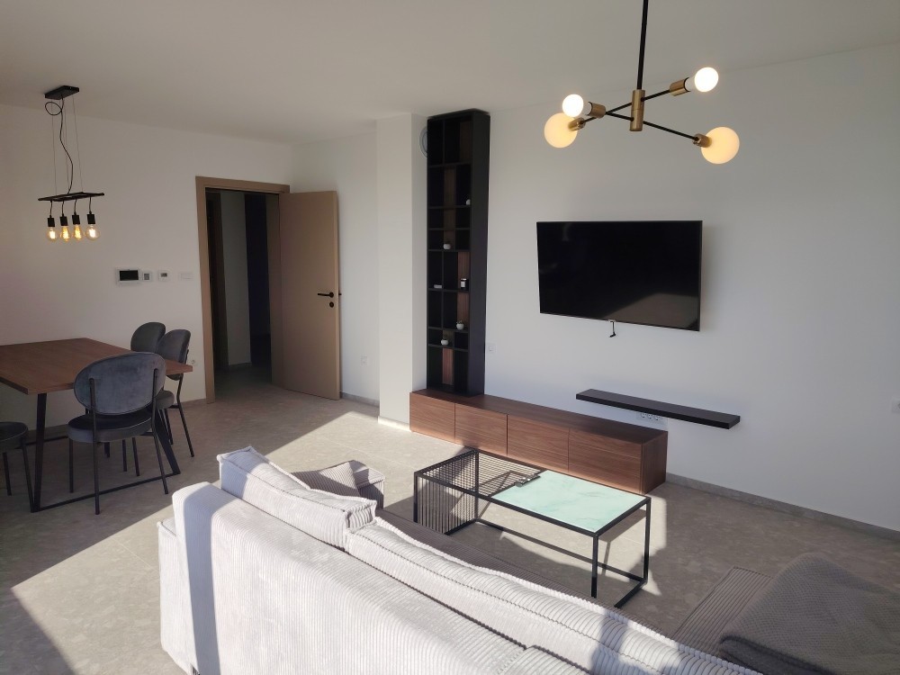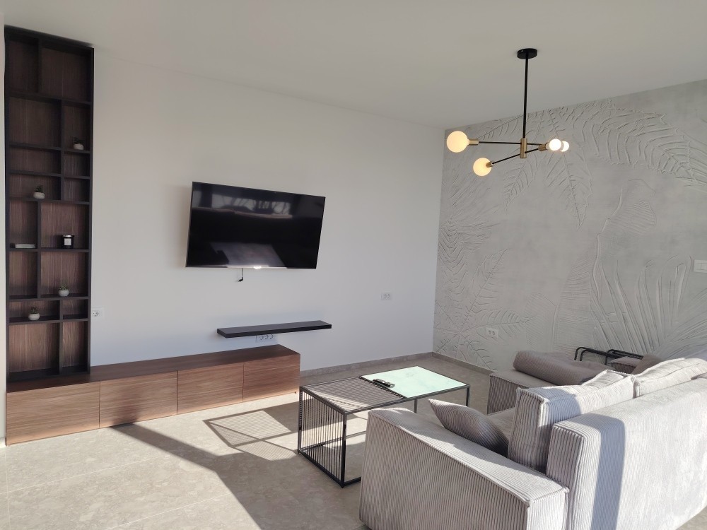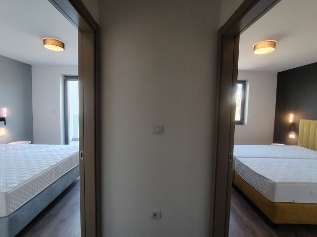 Prodajamo vrhunski stan na 1. nadstropju z veliko teraso, s katere se odpira lep pogled na morje. Stan sestavljajo predsoba, dnevna soba s kuhinjo in jedilnico, 3 spalnice, 2 kopalnici in en WC.