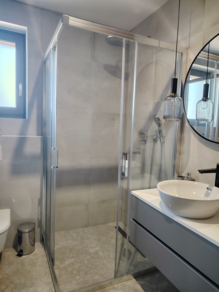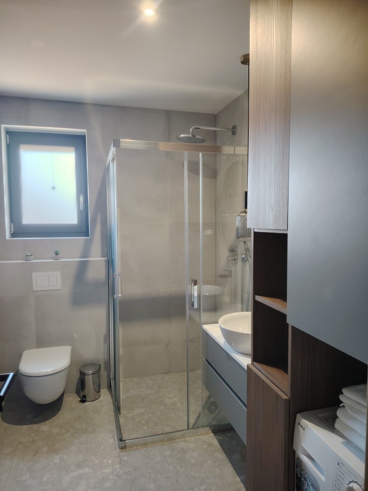 Stan je opremljen s talnim ogrevanjem po celotnem stanovanju, fan coili za ogrevanje/hlađenje, komarniki na vseh oknih, na terasi pa je jacuzzi.